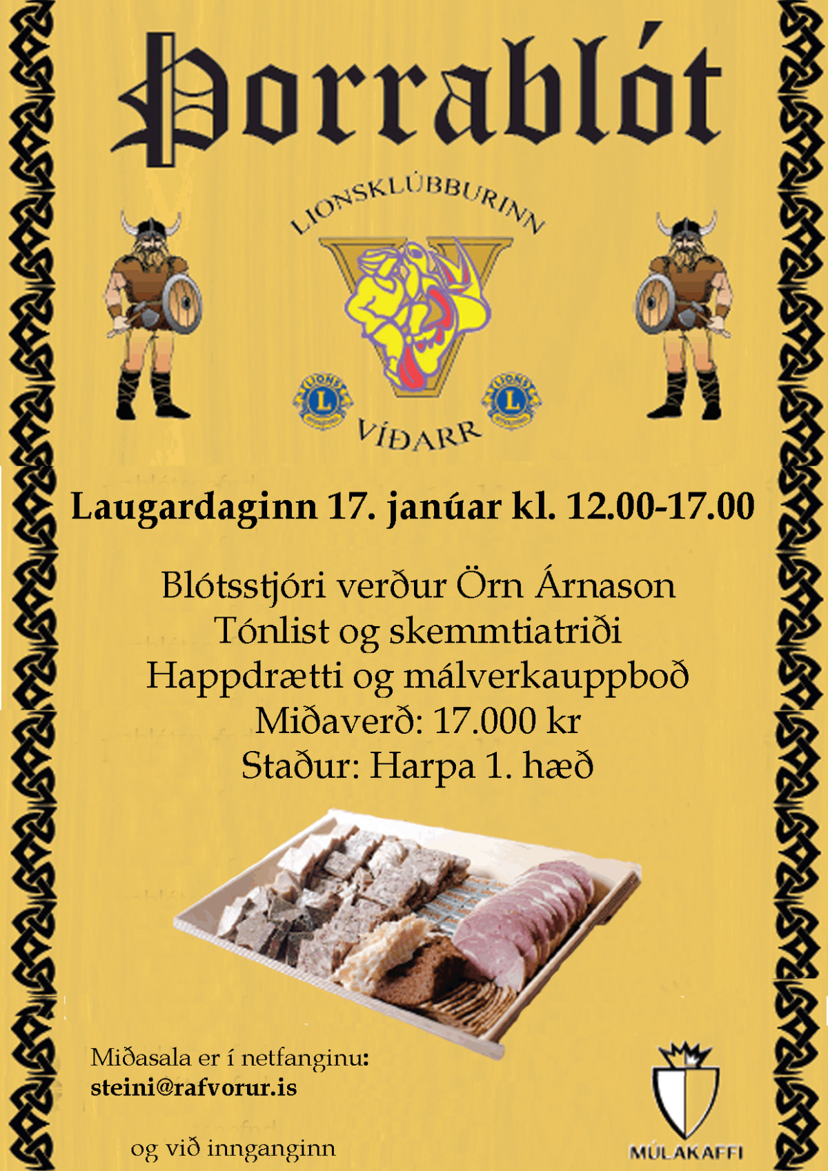 Lionsklúbburinn Víðarr heldur sitt árlega Víðarsblót laugardaginn 17. janúar kl 12:00-17:00 í Hörpu 1 hæð.